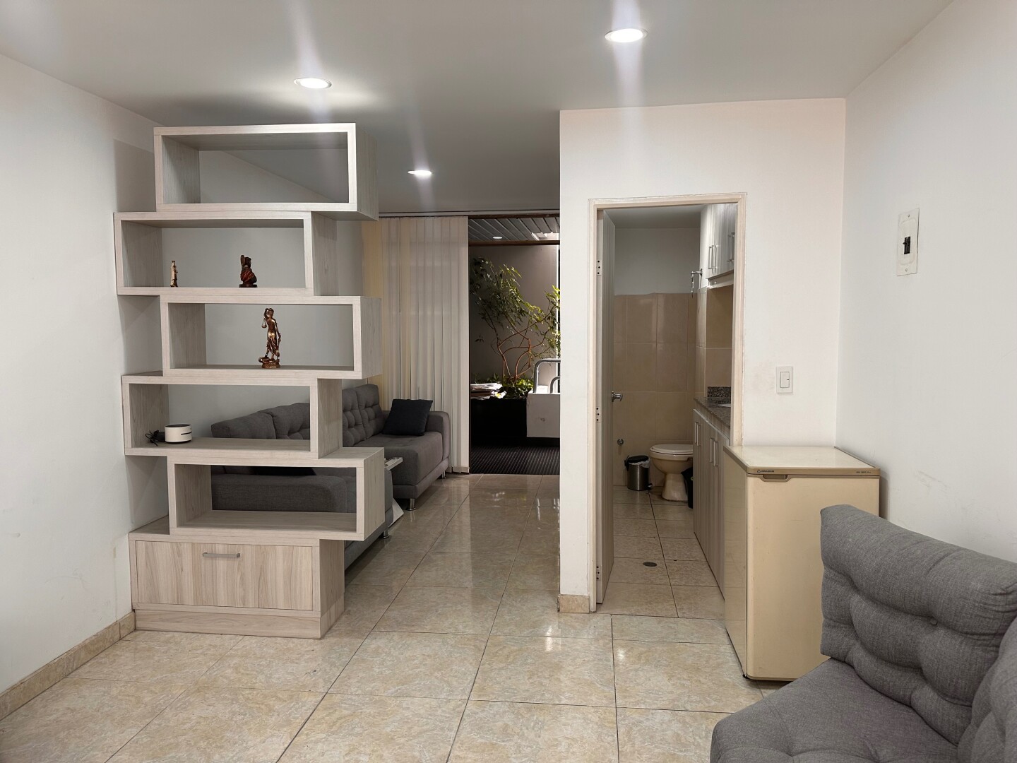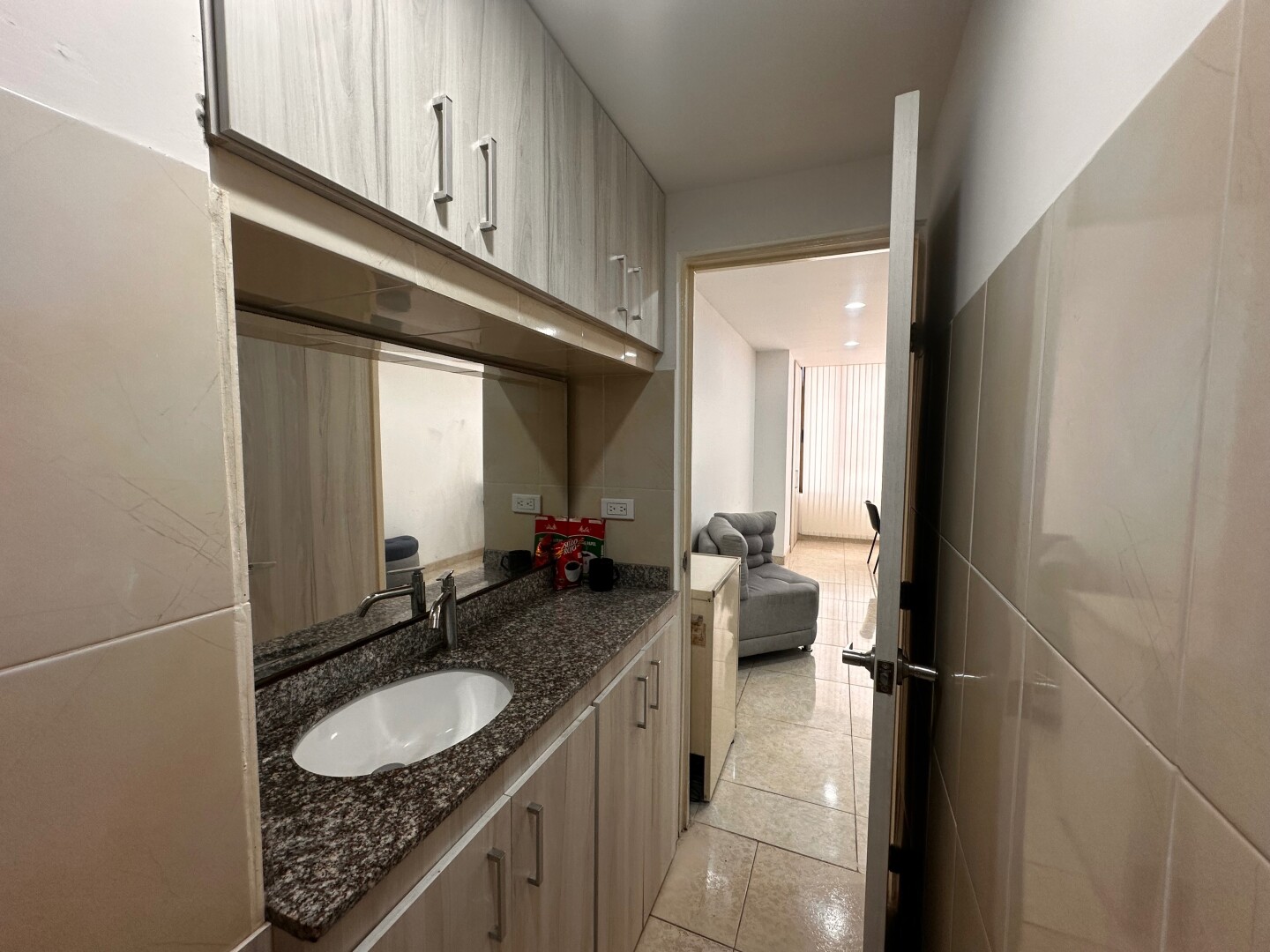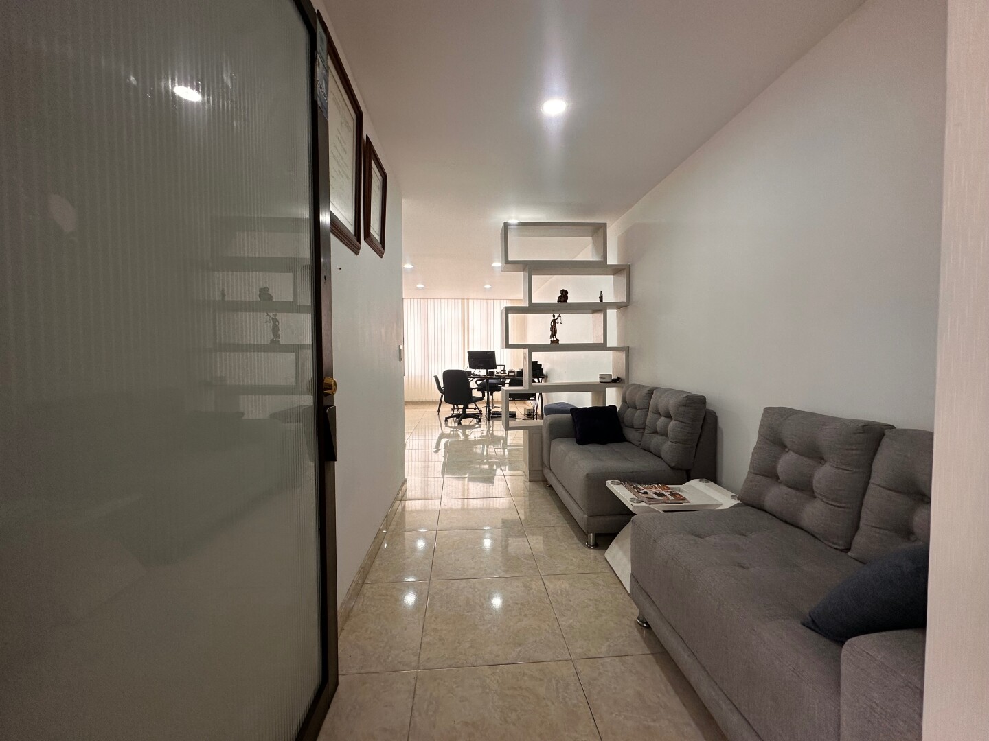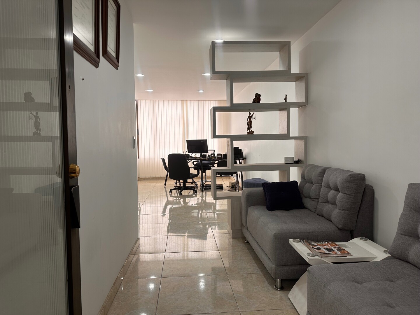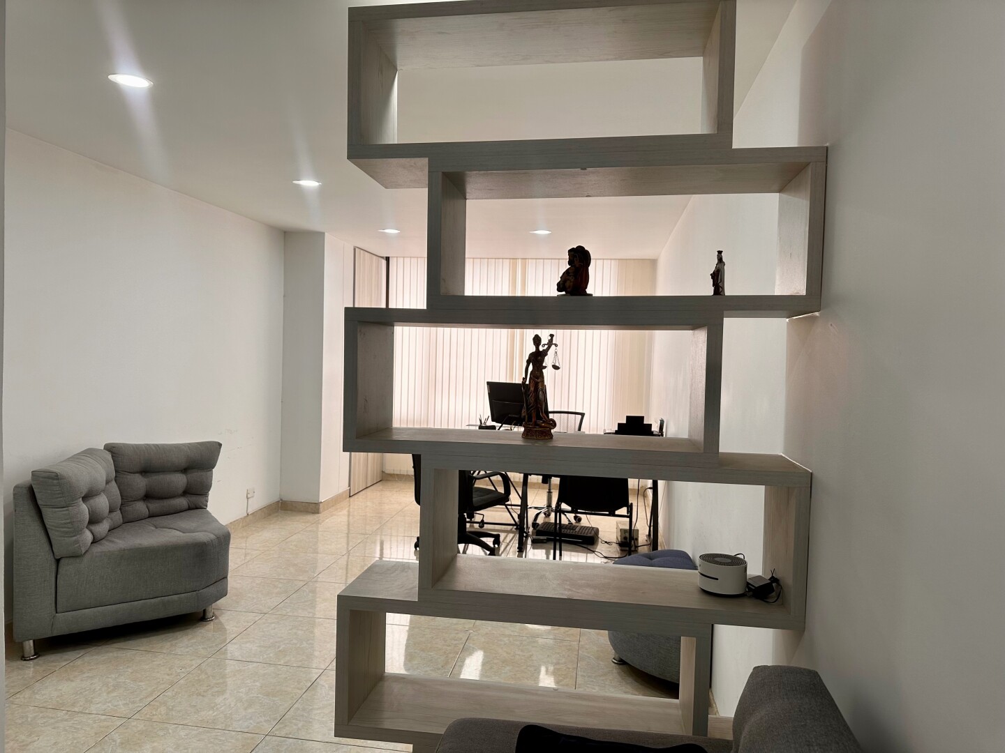 Ubicado en el quinto piso del centro comercial pasaje real el cual cuenta con ascensor, la oficina Consta de entrada panorámica en vidrio con su respectiva persiana, sala de Star, división decorativa en madera moderna, baño con mesón amplio en granito, lavamanos y cajones superiores e inferiores para archivo, salon para escritorios y biblioteca archivador empotrado en madera moderno,ventanal panorámico en vidrio con su respectiva persiana vista hacia carrera tercera, piso en cerámica, techo en Drywall iluminación led luz fría. Área 28 mts2, de frente 3,22 mts, de fondo 8,77 mts. Parqueadero y depósito # 10 Valor $180.000.000 Informes al 3502076862